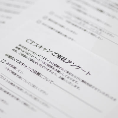 お客様にCTスキャンに関するアンケートを行いました。その結果、我々は半分納得しつつも肩を落としました。
